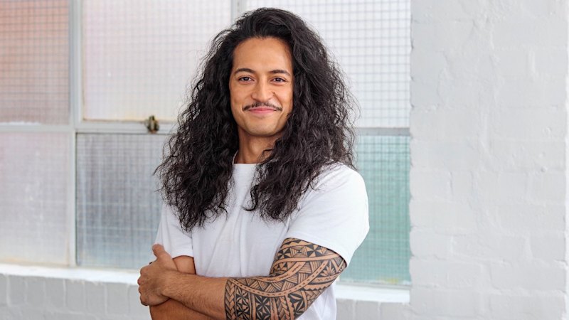 The New Zealand tenor’s black hair curls down to his shoulders Fabio-style; a Clark Gable moustache smoulders on his upper lip; and a skimpy black vest reveals a geometric Tongan tatatau covering his left upper arm and shoulder.